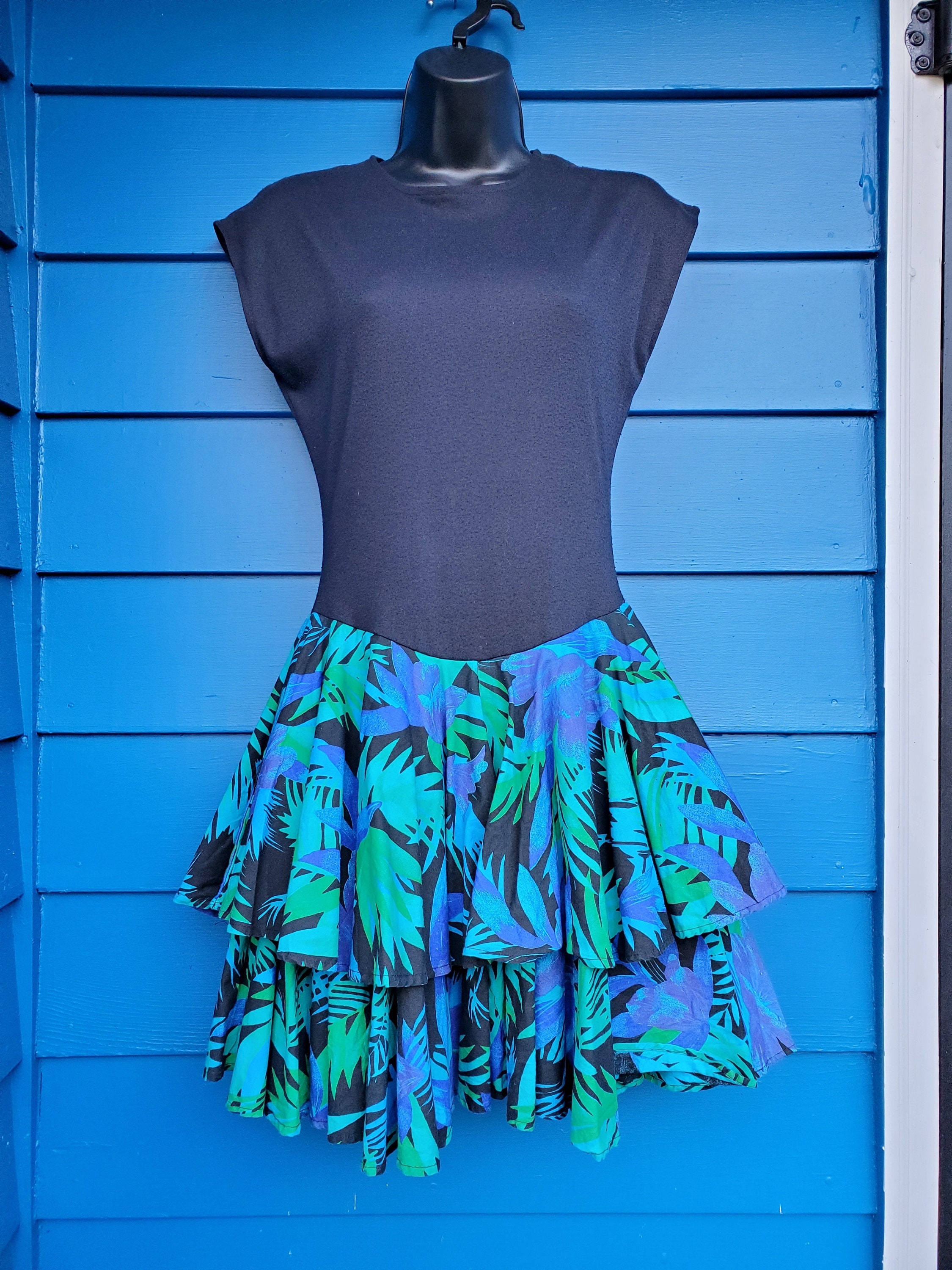 Vintage 80 S Party Dress Drop Waist Ruffle Skirt Etsy Canada